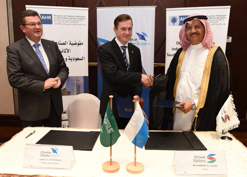 Riyadh, Saudi Arabia - 27 January, 2015: Sadara Chemical Company (Sadara) and Chemie-Cluster Bayern GmbH (CCB) have today signed an agreement to cooperate and jointly support the development of Chemical based value chains in PlasChem Park in Jubail, Saudi Arabia. This cooperation agreement will primarily focus on the identification and attraction of German and European Small and Medium Enterprises (SMEs) working in the Chemicals industries to establish a presence in PlasChem Park, which is a collaborative effort by Sadara and the Royal Commission for Jubail and Yanbu (RCJY). The signing was co-initiated by the German-Saudi Arabian Liaison Office for Economic Affairs.
